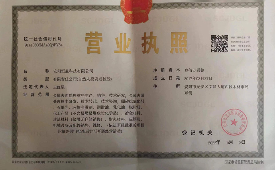 公司主要經營:鋼管鋼絲導軌滑塊系列產品:磷化劑、潤滑劑、緩蝕劑、導軌滑塊專用磷化劑、潤滑粉,熱軋管系列產品:芯棒潤滑劑、硼砂抗氧化劑、熱軋管導盤潤滑劑、熱擠壓石墨潤滑劑,表面涂裝系列產品:脫脂劑、表調劑、磷化劑、鈍化劑、防銹清洗劑、脫漆劑、噴涂/陶化/硅烷藥劑,金屬加工系列:切削液、磨削液、乳化油、防銹劑、防銹油、水性防銹劑、軋制液、脫膜劑,日化用品系列產品:洗衣液、洗手液、油污凈、潔廁靈、鍋底黑垢清洗劑、75%酒精、皂粉、爆炸鹽、管道清洗劑,減水劑系列產品。